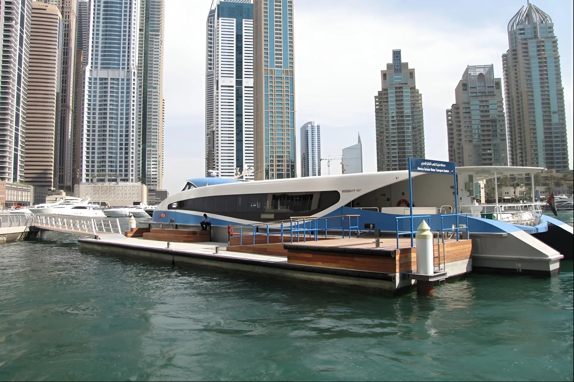In 2013, Marinas Performance delivered the Marina Terrace Ferry Station for the Roads and Transport Authority in Dubai Marina, one of the busiest and most visually prominent waterfront corridors in the city. The project required a high performance floating structure that could support regular ferry operations, provide safe passenger movement and integrate smoothly with the surrounding public realm.