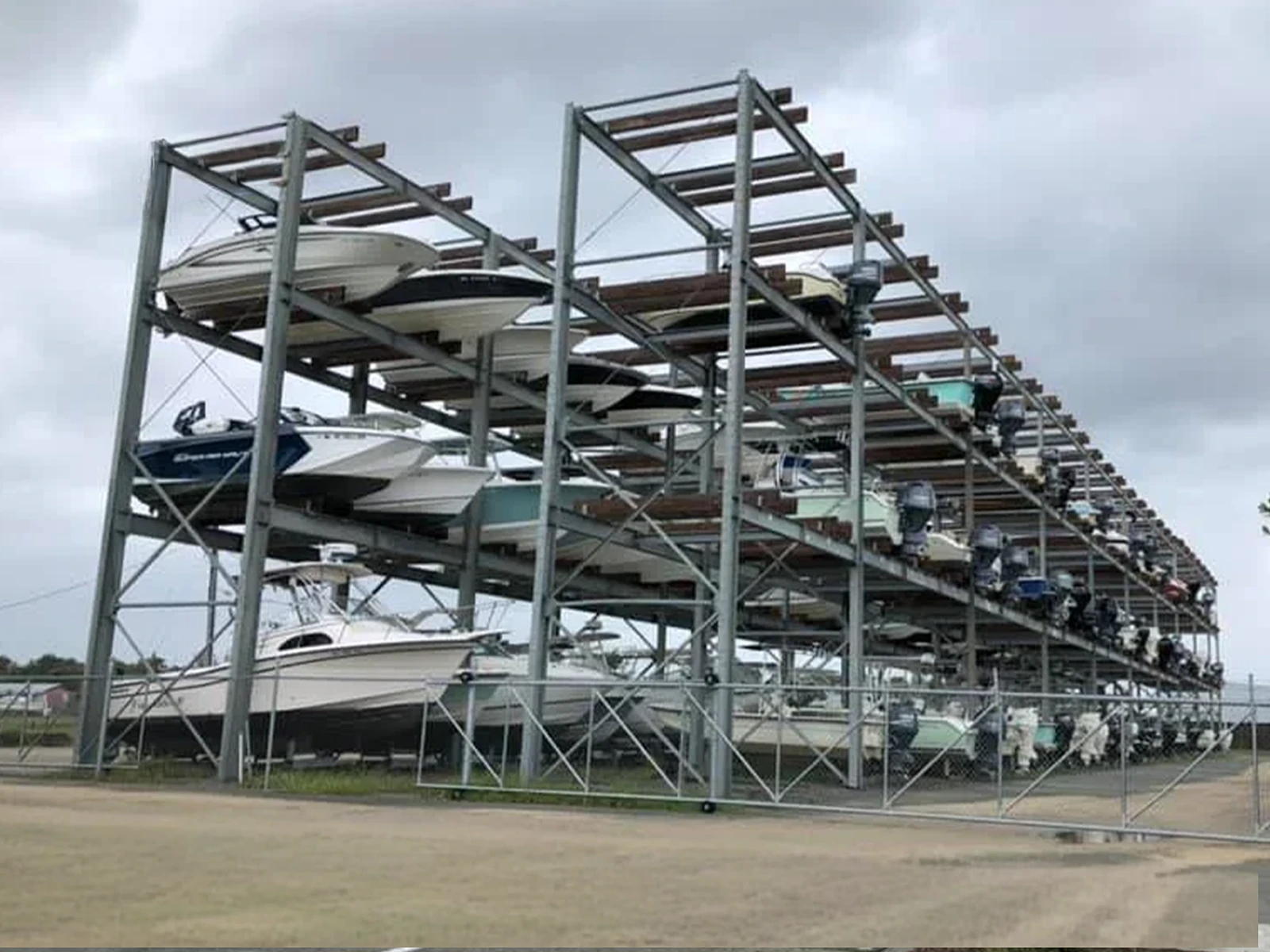 Efficient use of space as racks allow numerous boats to be stored