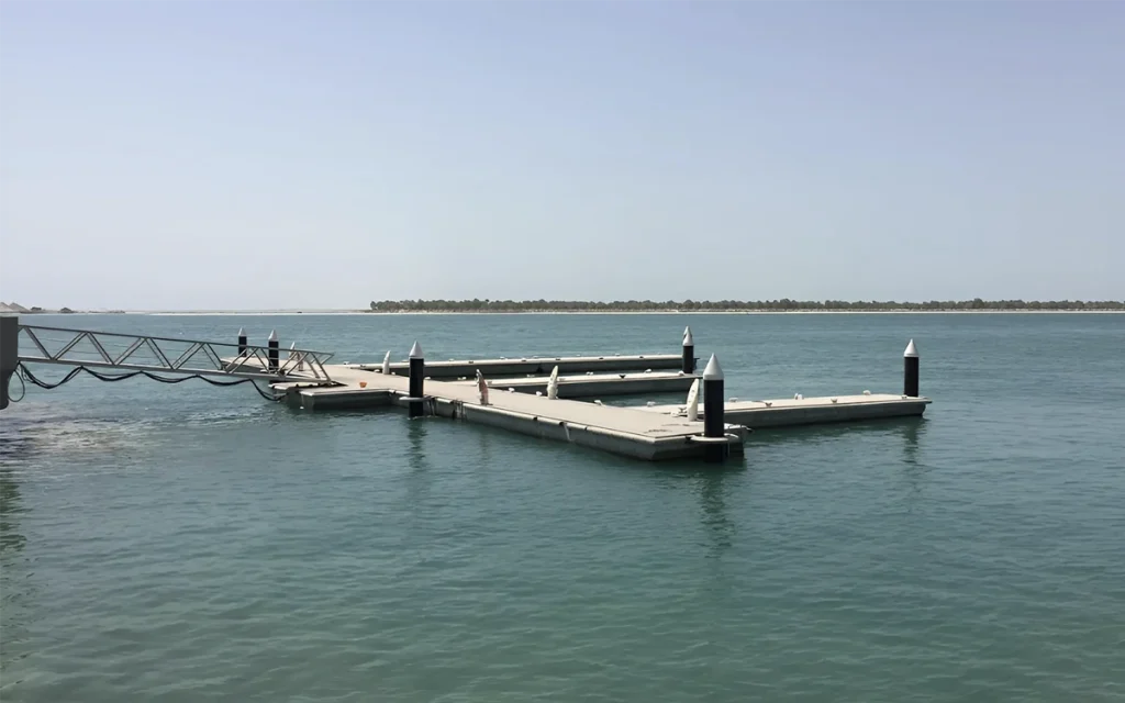 The completed pontoon system reflects the capability of Superior Elite structures to deliver dependable performance in specialised environments, reinforcing Marinas Performance’s experience in high standard marine infrastructure across Abu Dhabi.